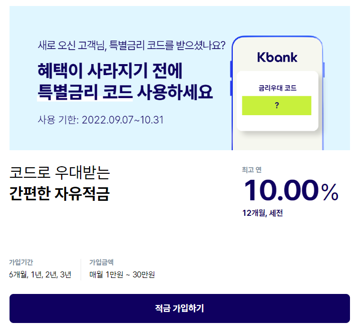 우대코드는 케이뱅크 이벤트 또는 제휴사 이벤트 진행 시에만 사용 가능
