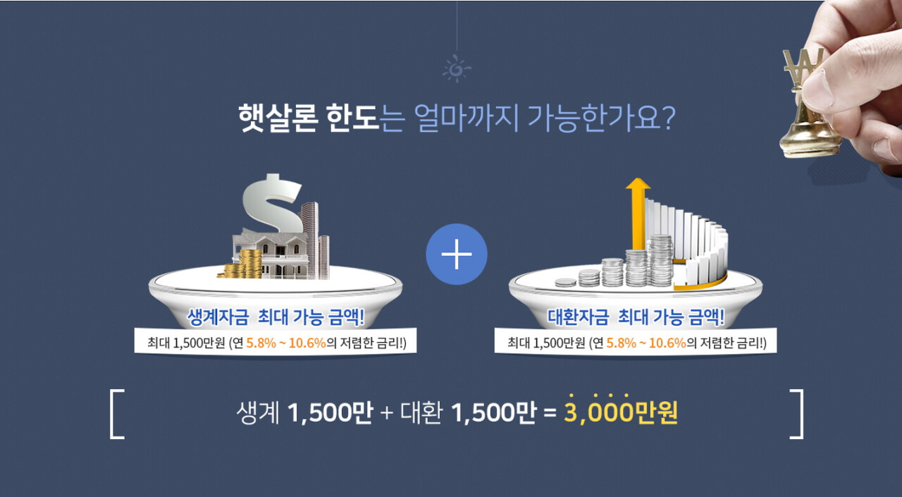 대출한도 : 최대 3천만원(대환자금 2,000만원+생계자금 1,000만원)