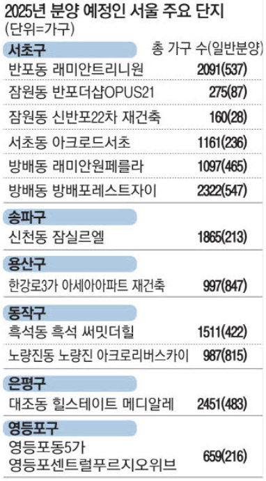 2025년 서울의 주요 아파트 단지별 분양 일정은 다음과 같습니다.